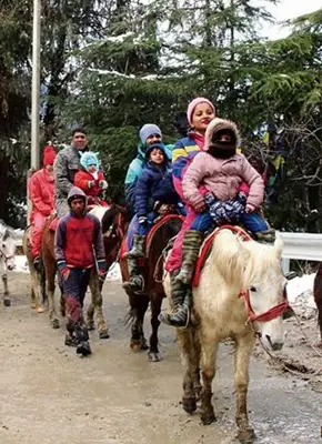 During snowfall, Kufri turns into a winter playground, where visitors can try skiing, sledging, snow tubing, or simply enjoy playing in the fresh snow. These fun seasonal activities make wintertime visits extra special and memorable for people of all age groups.